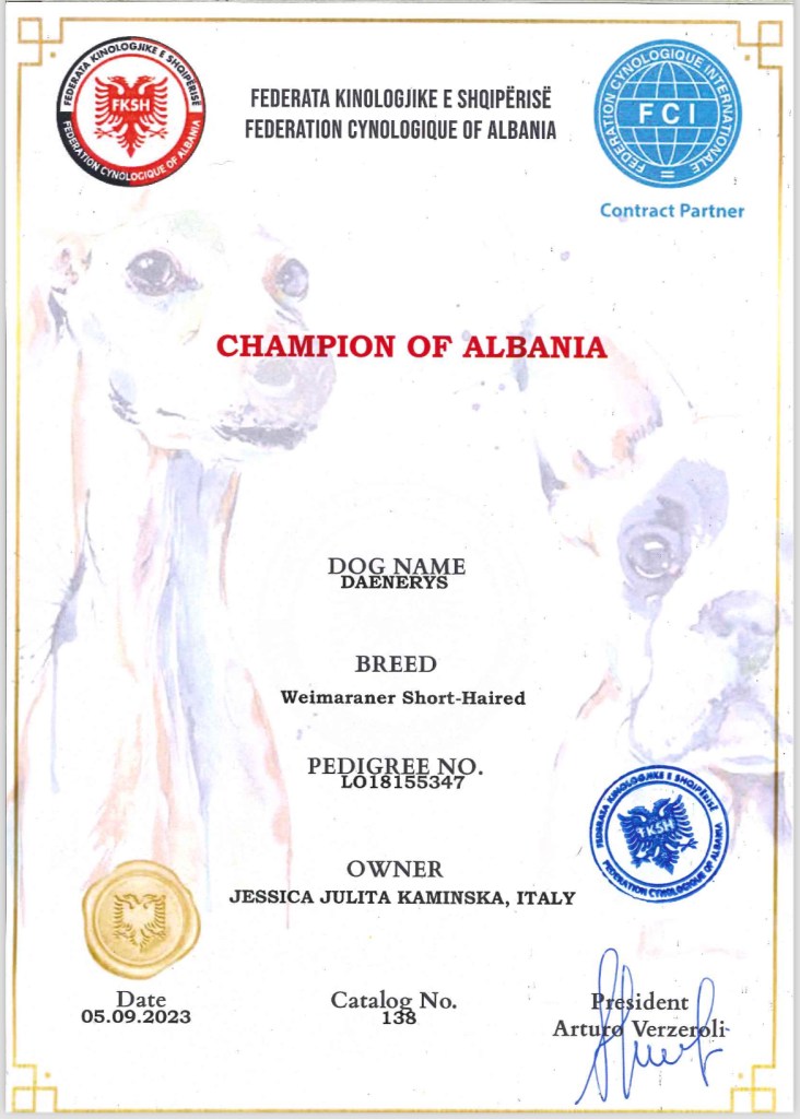 Daenerys così si aggiudica il titolo di GRAN CAMPIONESSA e CAMPIONESSA DI BELLEZZA DELL’ALBANIA!